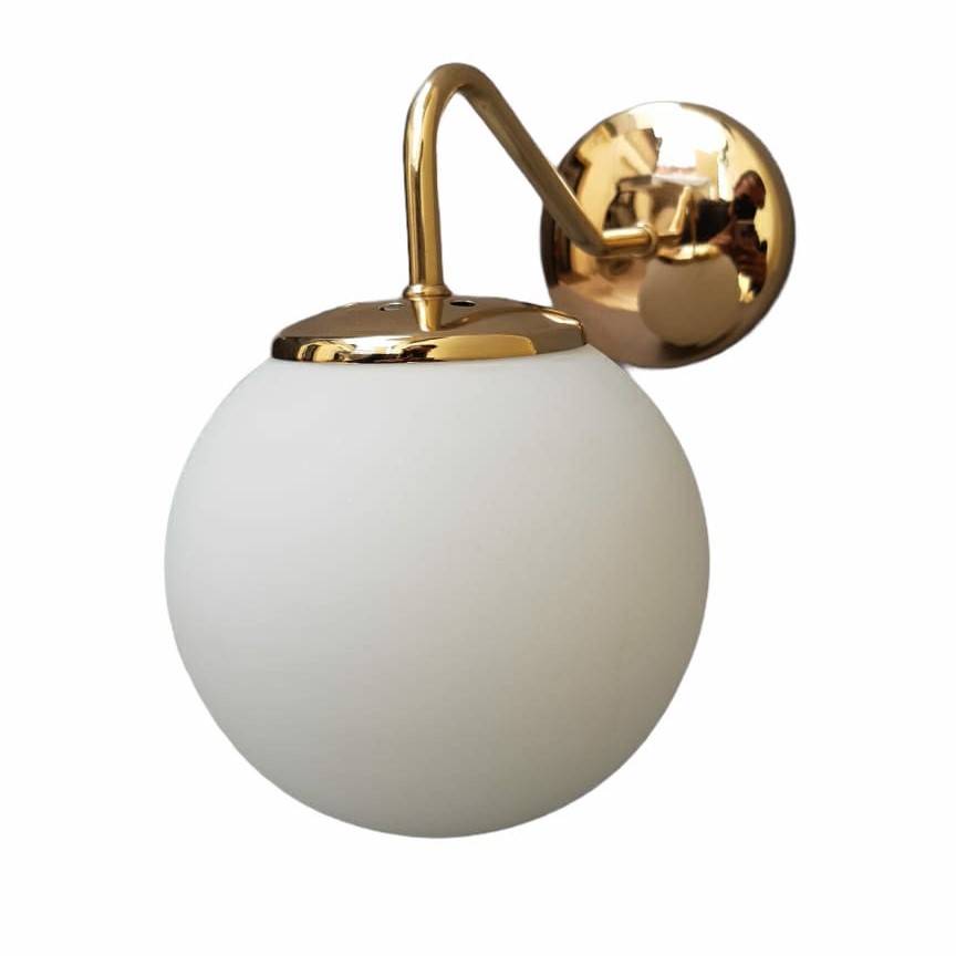 Aplique brazo pipa con globo de 15cm (tambien disponible con globo de 18cm) - vidrio opal satinado - accesorios dorado brillante