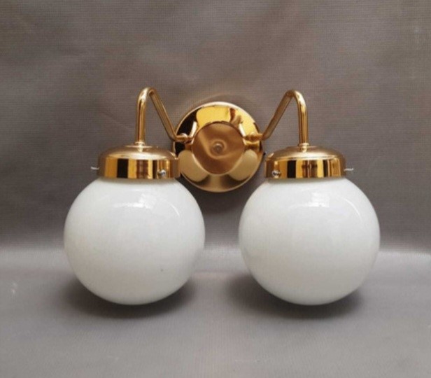 Aplique de 2 luces - brazo pipa - con globos de 15cm - vidrios opal brillantes - accesorios dorado brillante