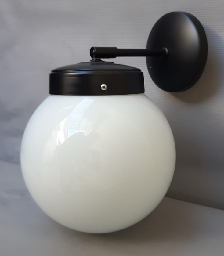 Aplique brazo recto y mov - con globo de 15cm (tambien disponible con globo de 18cm) - vidrio opal brillante - accesorios negros